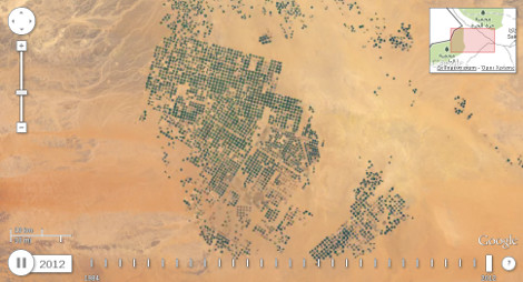 Πατήστε πάνω στην παρακάτω εικόνα για να δείτε καρέ καρέ την εξάπλωση του αρδευτικού συστήματος στη Σαουδική Αραβία: