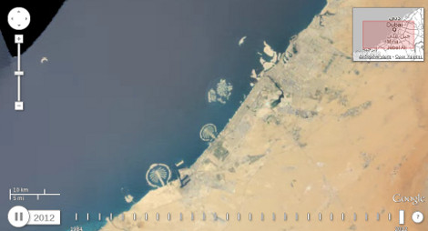 Πατήστε πάνω στην παρακάτω εικόνα για να δείτε τα τεχνητά νησιά στο Ντουμπάι να ξεφυτρώνουν:
